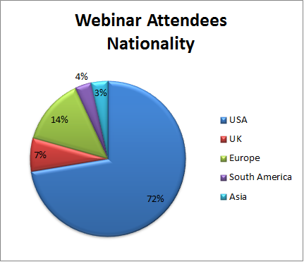 At the live event, 74% of our registrants went on to attend the webinar. Generally, if you get 50% attendance on the day, that will be deemed a reasonable turnout, so 74% well surpassed usual expectations. One dedicated Indian attendee stayed up past midnight to join us live online which certainly shows interest beyond the usual course of duty!